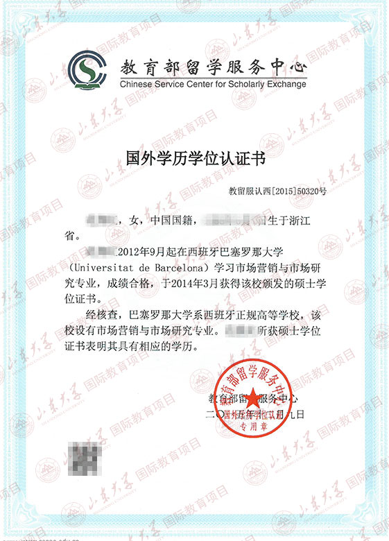 国外学历学位认证书(硕士)